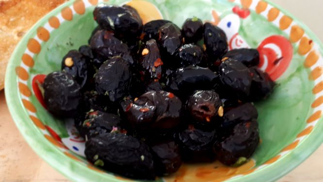 Use completely black olives for this technique. I prefer the outcome when you start with ripe Spanish Queen olives but others prefer the more pointed Kalamata type olive. Use any that you have and be prepared for a flavour hit!