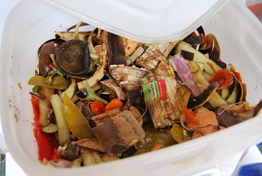 1. Every day, collect all food scraps – vegetable and fruit scraps as well as any leftovers from your meals. No bones or paper products.