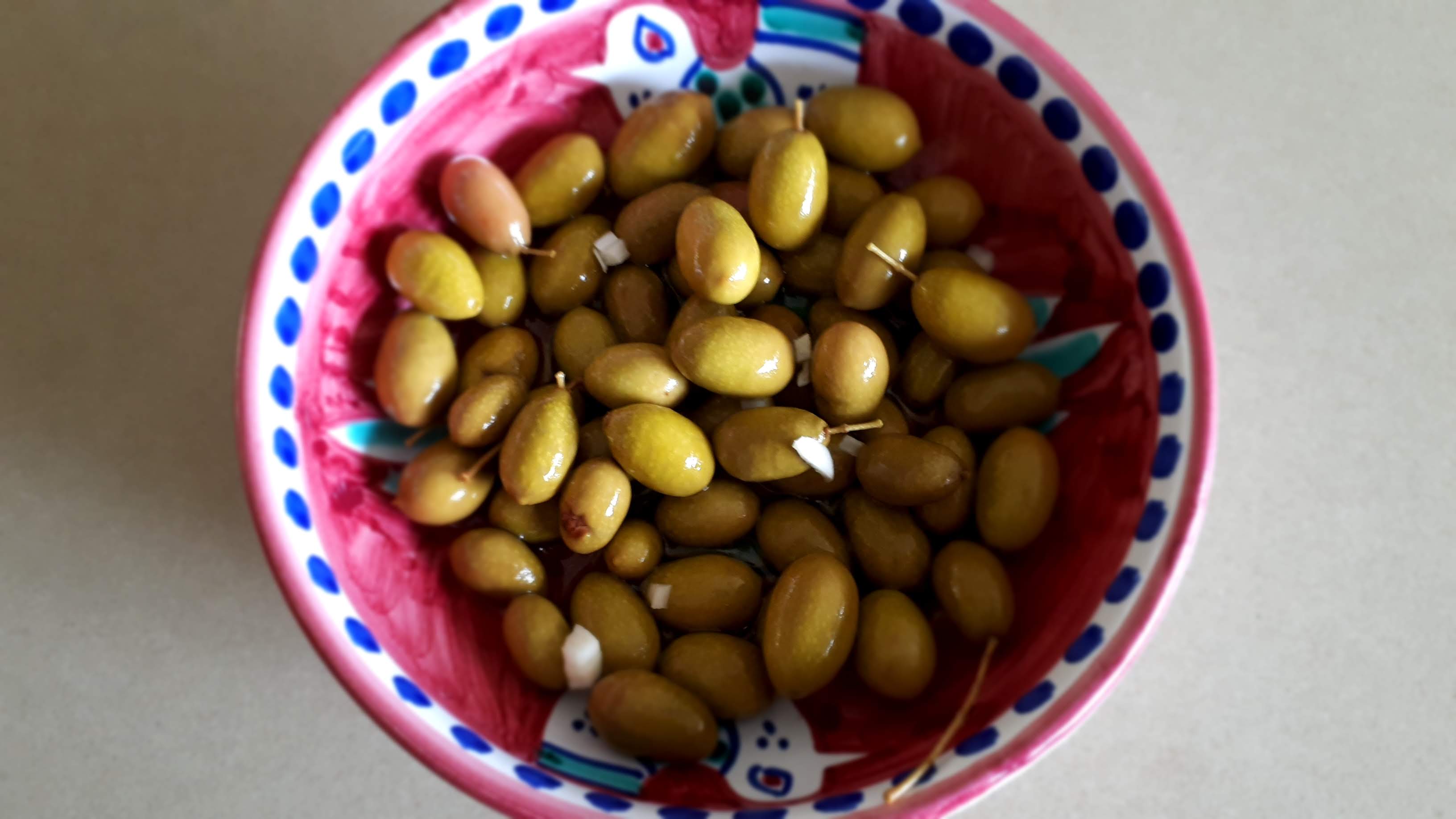 I use this technique when the olives are too small to be worth trying to slit or split them. Or I use it when I have olives that are halfway gone from being green to starting to turn purple.